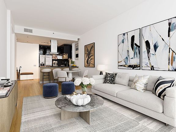 In Contract. Chic and beautiful one-bedroom apartment at Williamsburg’s coveted Decora, a boutique condominium in one of Brooklyn’s hottest neighborhoods. This luxurious gem is bathed in light by a wall of windows and glass door leading out to your own private balcony. The large open living/dining room enriched by hardwood floors is great for lounging and entertaining. This is met by a stunning open modern kitchen with a breakfast bar for easy serving along with high-end cabinetry, sleek black countertops, and stainless steel appliances including a stovetop with vented hood. The generous bedroom is bright and inviting with ample closet space. Refresh in the elegant spa-inspired tiled full bath featuring dual sinks, a spacious vanity and glass-enclosed tub/shower. W/D hookups are in the bathroom closet. The 6-story, 13-unit Decora at 165 North 10th Street offers an onsite gym and parking garage. Pets are allowed, as is unlimited subletting; plus super-low monthly charges make this offering excellent as a primary residence or an investment property. The building also enjoys a 421a tax abatement which expires in 2024. Located in the heart of vibrant Williamsburg with a backdrop of the Manhattan skyline, just a few stops on the L train from Manhattan, close to fabulous restaurants, bars, shopping and galleries! Note - there is a tenant in place until December 2022.