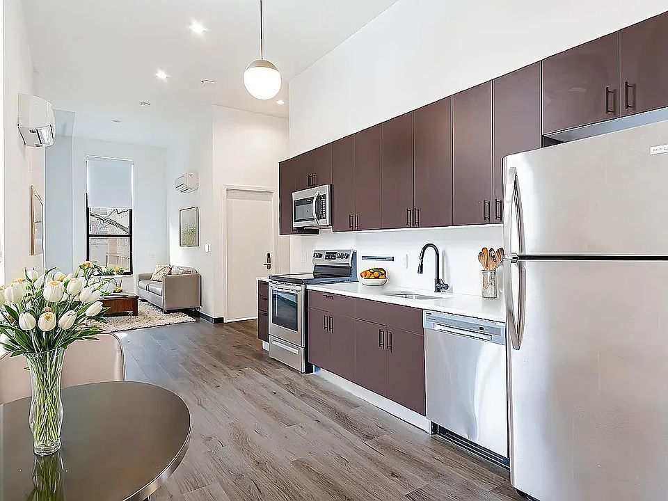 Stunning, Modern 4-Bedroom / 2-Bath Apartment in the Heart of Williamsburg Experience elevated city living in this beautifully designed apartment featuring spacious rooms and a sleek, fully renovated kitchen complete with stainless steel appliances, a dishwasher, and in-unit washer/dryer. Each room is equipped with energy-efficient split-unit central AC and heating, ensuring year-round comfort. The apartment is situated in a charming brownstone that is part of a two-building complex. Residents of the brownstone enjoy seamless accessthrough the rear entrance of the larger buildingto an array of premium amenities, including: Rooftop terrace with lounge seating and stunning views Media and entertainment room Bike storage Community recreation spaces *Utilities fee: $200 per month per apartment Ideally located in the heart of Williamsburg, you'll be steps from some of NYC's best coffee shops, restaurants, boutiques, and nightlife. Convenient access to nearby subway lines makes commuting fast and effortless.