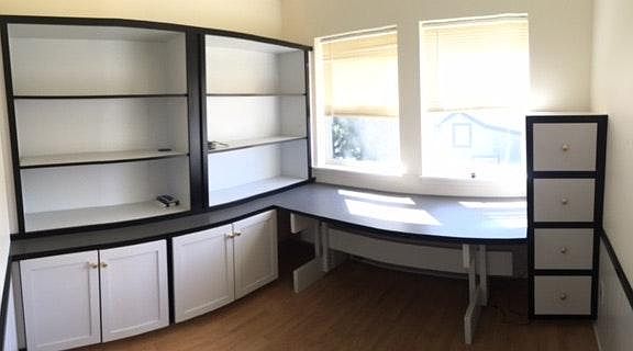Charming custom built, 2- bedroom home. Master bedroom, office and Master bath. Downstairs Bedroom and Bath with entrance to porch. Kitchen, dining/living room downstairs. Peaceful and serene, wood burning fireplace, high vaulted ceilings, koi pond in fenced, landscaped yard. Detached garage with small shop. Walking distance to grocery store, library, restaurants, lake. Utilities are not included. No pets please.