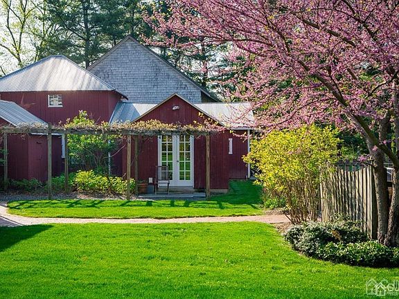 This house is a fastidiously maintained historic 3-bedroom classic farmhouse with modern support and utility systems (heat, cooling, plumbing and electricity), bathrooms, and kitchen. Numerous pre-sale upgrades have been made within the past year including new roofs, new siding, a new oversized septic system, and complete interior and exterior painting. The 1.27-acre park-like property is beautiful with a pretty in-ground pool surrounded by decorative and fruit-bearing plantings. The property has 4 auxiliary buildings totaling 4,000 sq ft suitable for storage, hobbies, or a home-based business. The main auxiliary building is a newly-constructed 2-story barn/garage with electricity, gas, water, and a half bathroom for cleaning up after working. The second floor is a wide-open high-ceiling unfinished space. Other auxiliary buildings include a 2-car standard garage with a second story for storage, a heated former professional workshop, a garden shed, and a heated/air-conditioned home office detached from the house. All are in good-to-excellent condition. Adjacent to these buildings is a very large parking area with ample space to park one or more RV, boat, horse van, trailer, etc. plus a half dozen or more regular parking spaces. For commuters, the train, bus, and NJ Turnpike Exit 8-A are conveniently accessible. The house is listed in the Cranbury Historic District. It is just a short distance from the historic Cranbury village (often rated as one of the most desirable villages in New Jersey, where there are shops, restaurants, services, post office, public library, etc. Schools: Cranbury's National Blue Rillon award-winning elementary and Princeton High School.