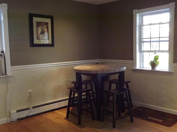 This charming 3 BR home has been tastefully updated throughout. Spacious LR w/bamboo fls & pellet stove provides add'l heating source. 2 Full baths, laundry rm, formal dining rm, newer mechanicals. Oversized 2-car garage, 12x16 shed, off streeet parking & encl porch. Back yard is perfect for entertaining offering a patio w/pergola & pond. Come see this unique property. 100% Financing thru USDA.