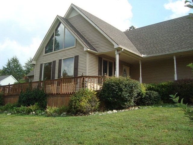 Beautiful setting overlooking large lot. Lots of room to Play! Also across from Neighbors lake. Spacious home. 4 bedroom 3 baths. Vaulted ceilings. Sitting room upstairs overlooks living area below. Wrap around deck on front. Large concrete patio and extra parking area in back. Appliances included. Nice carpet. This is a Fannie Mae Homepath property.