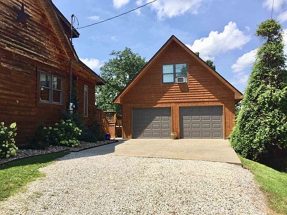MOTIVATED SELLER!!!Beautiful log home w/10.75 +/- acres, very private & only 1 mile from town. On the first floor, you have an open concept with LR, kitchen & DR w/large master BR & BA. Kitchen has newer custom cabinets & beautiful granite counter tops. Beautiful country sun room that overlooks the pool with an extra bathroom off the sun room. On the 2nd floor, there are high ceilings & open balcony stairway leading to 2 large BRs. One is a loft Br. w/bath in between. Newer AC & gas unit w/natural gas. Also gas logs to keep it very cozy. Walk out back door to an det. oversize 2 car garage new with 496 x/- finished bonus room upstairs that could be made into an apartment. A 24 ft. above ground pool w/48x40 deck & 2 ponds (1 large and 1 small). If you want privacy in back yard near pool this is it. There are ATV trails and views. Large covered country front porch. Sq. ft. is approximate. Need another BR you could use the Sun room. Seller allowing up to $5000. towards closing costs.