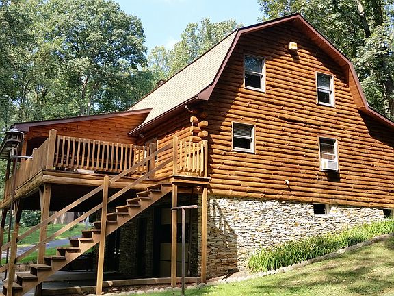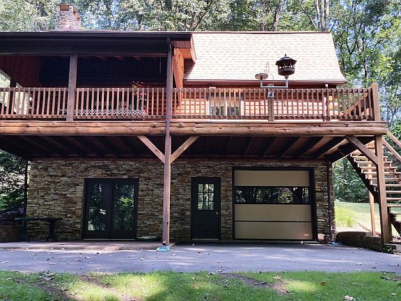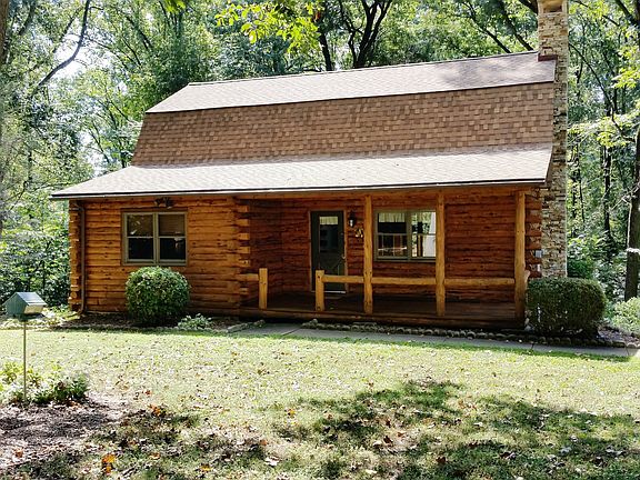 Beautiful Rustic log home in a private setting. Stacked stone chimney in the LR and FR. Home features a loft and a 1st floor Master BR. Nice front porch, and you can relax on the 34X14 deck overlooking nature. Half of the deck is covered and makes it great for grilling and entertaining. Full daylight basement that is partially finished and walk out to the back yard. Huge 70X52 garage & carport. Heated and great for car enthusiasts or hobbyists.