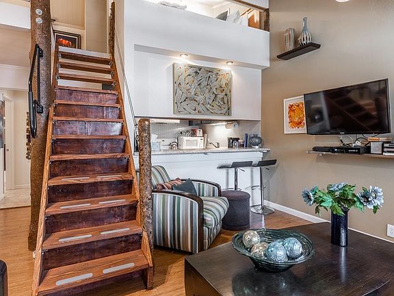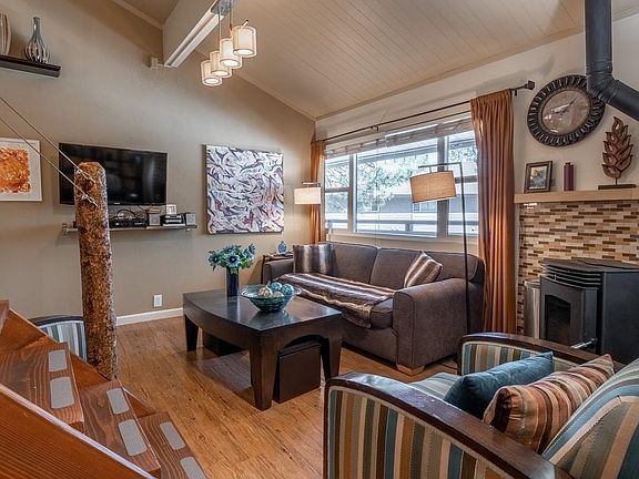 This light and bright 1 bed + 1 bath condo is the perfect mountain getaway. Tons of sun and treetop views from the bedroom. Lovingly cared for and updated. The current owner has updated the flooring and the bathroom, recently installed two locking closets behind the dining area and storage under the stairs, and replaced the wood stove with a pellet stove. The large loft (390 sq feet per the seller) has been divided into two areas and has its own approx 10'x15' lockable closet for all your toys. There are washer/dryer hook ups in the bedroom. Sierra Manors is zoned for nightly rentals and the HOA allows them. The Tesla charging station is next-door with 8 Superchargers available 24/7, up to 150 kW. Centrally located within two blocks of.... Footloose, Starbucks, Mammoth Coffee Roasters, The Warming Hut, Roberto's, Vons, The Booky Joint, Looney Bean, RiteAid, Domino's, Z Pizza, Good Life Cafe, Distant Brewing, the movie theater and so much more. Sierra Manors is on the Red Line FREE shuttle route that goes up from the Snowcreek Athletic Club up to Mammoth Mountain and connects to other lines that will take you up to the Lakes Basin and all over town. Sierra Manors has a seasonal pool, game room and year round hot tubs and saunas. Low monthly HOAs of approx $337. Easy to show! Don't miss this charming and cozy mountain getaway!