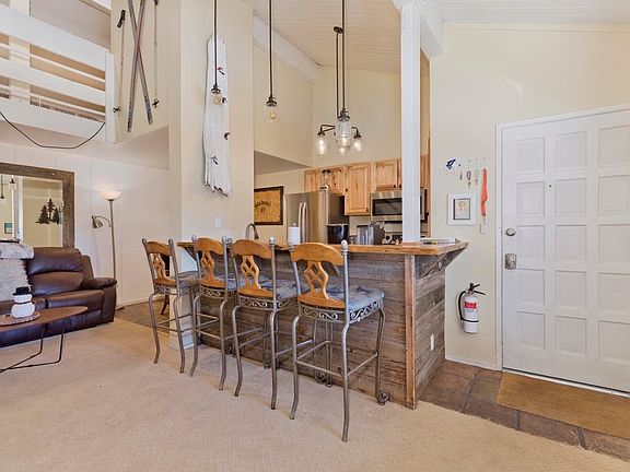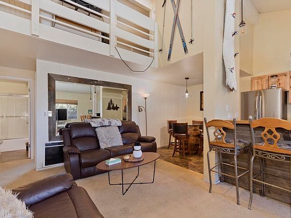 Beautifully remodeled turnkey condo in downtown area one bedroom unit with a loft and two bathrooms. The kitchen has granite slab counter, newer floors and cabinets. Freestanding pellet stove in living room, state of the art kitchen with a great entertaining feel. This condo faces the quiet side of town with partial mountain views. Very easy parking, includes 2 spaces. Walking distance to many restaurants, Vons grocery store, bowling, movie theater, and shopping centers. The shuttle bus stop to the Gondola and lodges is just steps away and only a few minutes ride. Golf, hiking, fishing, and biking trails are also nearby. Sierra Manors has many of its own amenities - an outdoor swimming pool (summer only), 3 enclosed spas, 3 saunas. Per local inspector, stairs and loft meet Town code requirements.