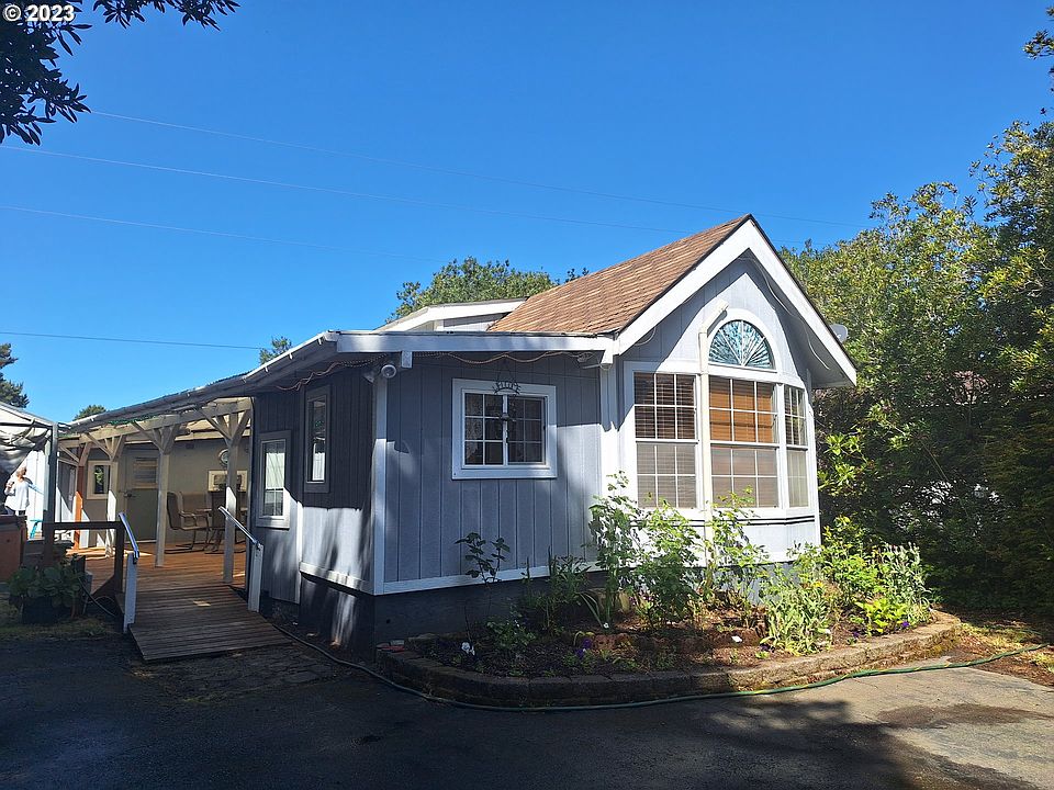 Early 1990's, Park Model, 1 bedroom 1 bathroom and furnished. The bathroom comes with shower & tub. A bump out with skylight and lots windows has potential for office/game room/hobbies. Vaulted ceilings and loft sleeping or storage. Newer Heat pump/HVAC system for heating and cooling. Room for RV/boat parking. Detached extra unit with laundry. A covered patio designed for wind protection. Two more sizable sheds for storing tools and electricity for that extra appliance. Back yard with room to fence for pets. Coast Village Community includes water, sewer, and rubbish; gated, pool, laundry, rec room, community garden, post office more! Coast Village is centrally located in town and only minutes to the beach. Easy to show, call for your appointment !