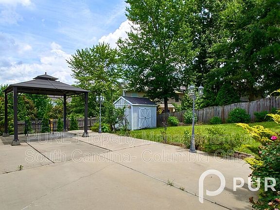 Beautiful 4 bedroom, 2.5 bath home in the Stoney Point at Bear Creek subdivision on Lake Murray in Chapin. Covered front entry, 2-car garage, and privacy-fenced backyard w/ oversized patio, cabana, and storage shed. Hardwood and tile flooring throughout and granite counter top in the kitchen and both full bathrooms. Formal living and dining room w/ custom molding and half bath off the foyer. Open floorplan family room and dining area open to the kitchen island bar counter. Kitchen also features a pantry and included stainless steel smooth-top stove, built-in microwave, dishwasher, and side-by-side refrigerator. All bedrooms upstairs. Primary bedroom suite vaulted ceilings, a walk-in closet and full bathroom w/ double sinks, garden tub, and shower. Three additional bedrooms have a walk-in closets. 2nd full bath and laundry room off the hall. Convenient to Lake Murray, I-26, Chapin amenities. Lexington 5 schools.
