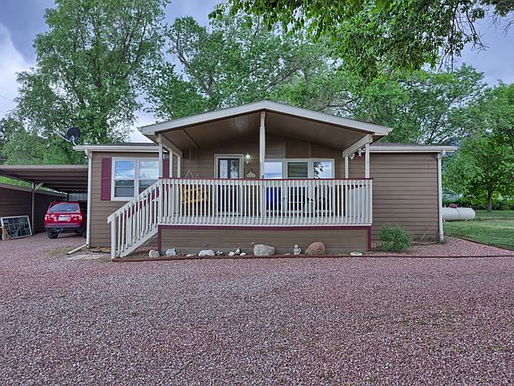 Absolutely darling country feel. Almost 3/4 acre lot with tons of upgrades. Relax and enjoy mountain views from spacious covered deck. Great open floor plan. Updated kitchen with Hickory cabinets. All appliances stay! Living room features vaulted ceilings and newer carpet. Large master suite with attached bathroom and walk in closet. 2 other large bedrooms full bath. 25 x 25 insulated shop with electric, perfect for shop or studio. 2 1/2 covered spaces for parking. Additional RV parking with its own RV clean out. Lovely Colorado Red Rock gravel driveway and expanded parking possibilities. Recently painted inside and out. Radon mitigation system. French drains and gutter system upgrades. 20 mil plastic added to crawl space to aid in insulation. Trees professionally trimmed to aid in fire mitigation. Swap Cooler and cover stay! Close to Cheyenne Mountain State Park.