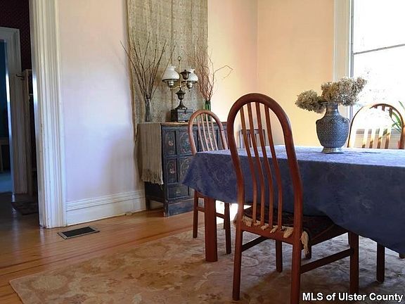 Beautiful and Grand Victorian with guest house on one of the most charming & convenient streets in Uptown Kingston. Lots of period detail; 10-foot ceilings on first floor, pocket doors between LR & DR, brick fireplaces with mantles in LR and main bedroom, bright cathedral kitchen opens to rear deck plus additional deck for above-ground pool. Three bedrooms, with potential for 2 more - one on first floor with attached bathroom and one in basement. Finished, insulated attic with plenty of space. Cavernous, dry basement with lots of rooms & closets. Laundry in first floor bathroom. Huge back yard. Perennial plantings all around, with established organic garden in back. Converted garage with skylights is a lovely one-bedroom guesthouse or studio with full bath and propane stand-alone heater. Ultra-walkable location-minutes to shops, galleries & restaurants, 1.5 miles to Wallkill Valley rail trail trailhead, which is great for walking, biking or cross-country skiing.