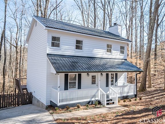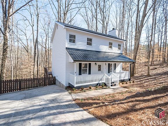 Newly remodeled 3 bed 2 1/2 bath home in Bogart with flowing creek in the back yard! This home is located in a cul de sac with one of the best lots in the neighborhood. The exterior features new landscaping, stone accents, fresh paint on exterior, metal roof, a new deck on the rear of the home and a fenced in backyard. As you walk through the front door it opens up to a large living room with a fireplace and new LVP flooring. The entire interior of the home has fresh paint, new ceiling fans, new LVP flooring on the main level and lots of natural light. The upstairs features the master bedroom and 2 other bedrooms with new carpet throughout. This one will not last long at this price.