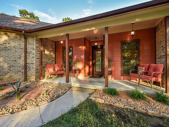 1 story ranch style pool home on 1.37 acre wooded lot. Located in a gated community just off 290 E. All new wood and travertine floors, no carpets. Updated 2.5 baths with granite and new light fixture, faucets and toilets. Walk in shower in master. Dedicated office/game room. New kitchen cabinetry, granite counters, SS appliances. Great fenced in pool area, pergola and grill area. 2 Outdoor buildings great for a studio, craft or storage. Fenced vegetable garden and shed. Located on a cul-de-sac this home has a great and serene atmosphere to relax, enjoy the large covered patio, great house to entertain. Subdivison offers park setting and tennis courts.