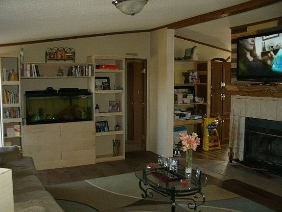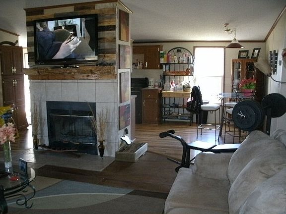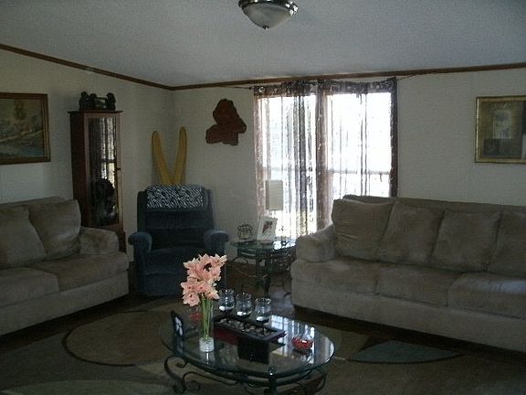 Charming doublewide on level 6.5 acres. Stocked pond and detached outbuilding.