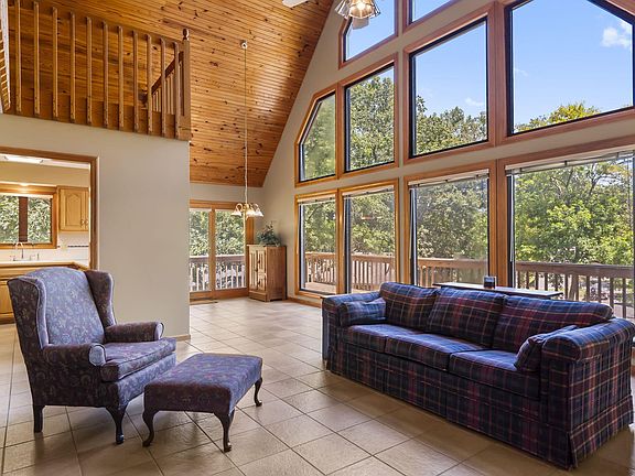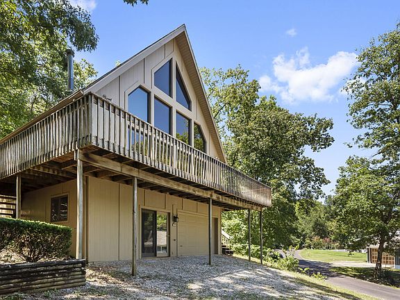 You don't want to miss this one. Nestled into the secluded hillside neighborhood of Lake Taneycomo Acres, this small lake side community is just minutes away from Branson Schools, shopping, and all Branson entertainment yet a tucked away sought after subdivision on the banks of Lake Taneycomo world class trout fishing right down the street is your private community boat launch. This 3 bedroom, 3 bath home offers a light and bright feel as the large open floor plan vaulted tongue & groove ceiling and plenty of natural light with Anderson wood windows. Lower level walk out basement offers a family room for entertaining and a tandem 40 ft deep garage you can park your boat and car in the garage with plenty of storage in the garage and extra storage in the mechanical room. Walk upstairs to the main level with 2 bedrooms, 2 baths, living room, laundry and kitchen. Next level offers an open loft area and another bedroom and full bath. Plenty of space for all your guest. The large deck extends the front of the home, a great place to sit outside and enjoy the cool breeze coming off the Lake Taneycomo. First time on the market, well cared for one owner home, custom built and has always been used as a vacation home. Exterior of the home has just been painted and a new HVAC unit was installed in July 2024, roof is only 4 years old. Call today to book your showing on this home before you miss out.