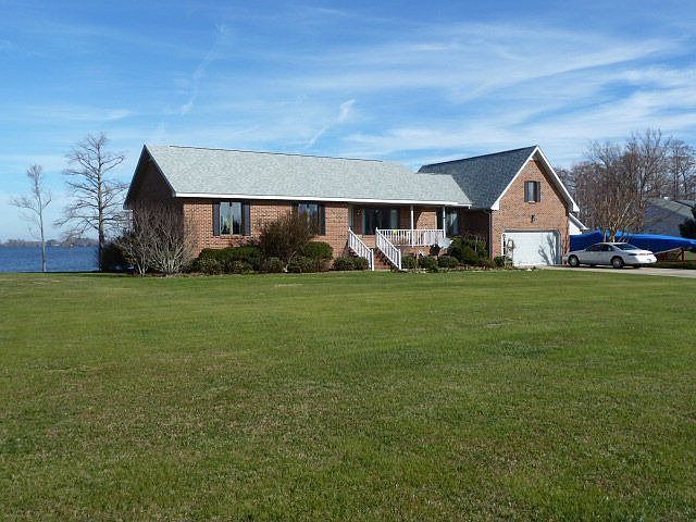 Pristine brick home, move in ready! Well cared for waterfront home with open floor plan. Three bedroom two bath home with huge kitchen. Pantry style cabinet doors with roll out drawers. FROG with storage the full length of the attic. Double attached garage with double detached garage/workshop - AC. Lush landscaped yard situated on the beautiful views of the Perquimans River. Porch for enjoying the view, bulkhead, boat dock and pier. Pier needs some repair. No maintenance vinyl railings on both porches. Architectural Shingles on home and double concrete driveway to both garages.