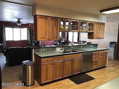 This is living well! Light and bright Rancher with open-floor-plan main floor. Living room flows into updated kitchen and spacious family room/dining room. French doors lead to large wood deck entertaining area in the back yard. Light and bright Rancher with open-floor-plan main floor. Living room flows into updated kitchen and spacious family room/dining room. French doors lead to large wood deck entertaining area in the back yard. This home is situated in a top-notch neighborhood and close to everything. Large main-floor master bedroom is attached to a room that could be a huge walk-in closet or another bedroom. Basement has two bedrooms, a den and another large room that could be used as a bedroom with closet. There could be six usable bedrooms in this home. Handy utility/wash room is also in the basement along with 3/4 bath. Attached garage is great to keep you out of the weather with direct kitchen entry. 30' X 30' shop out-building has roll-up door and also a walk-through door and lots of handy shelving. There is also a large parking area adjacent to shop with alley access. This is a huge lot! Backyard is landscaped with walkway to shop. Rinnai Tank-less water heater, bonus! For back-up heating, living room has wood-burning stove for those cozy days and nights in front of the big picture window. Square footage posted is based on recent appraisal -- 1,886 sq. ft. gross living area above ground and 1,040 sq. ft. basement living area.