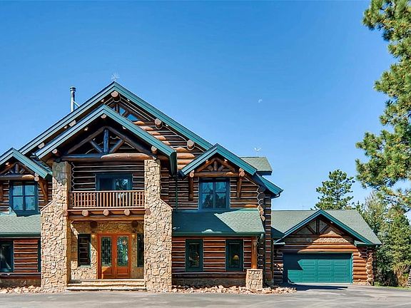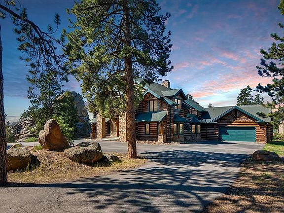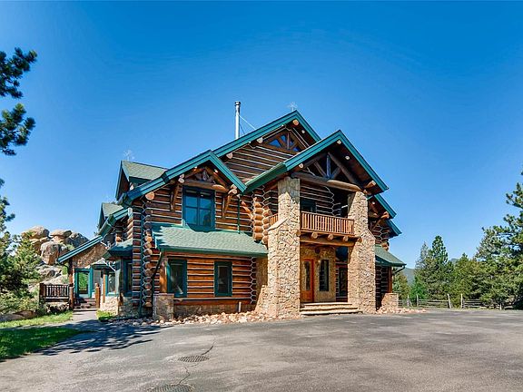 Exclusive mountain retreat nestled between Conifer & Bailey, just minutes from Denver but worlds away from all the hustle & bustle. 35 wooded acres w/ dramatic rock formations & jaw-dropping views in every direction. A stunning full round-style custom log home sits high atop the private, gated drive. This one-of-a-kind home features: 5 beds & 4 baths in the main house, a gourmet kitchen w/ Sub-Z & Wolf appliances, a massive two-story foyer w/ a dramatic, two-sided Colorado Moss Stone fireplace, loft w/ wet bar and billiards table & a secret door leading to a private media room, master suite w/ wood burning stove & huge sitting area. Outside, the views steal the show & you can enjoy them from your choice of the many porches & decks or while floating in the incredible custom pool w/ two water slides winding through the natural rocks. End your day watching the sunset off the viewing deck overhanging the back cliffs. This is truly a very special & unique place. DON'T MISS DRONE TOUR ABOVE!