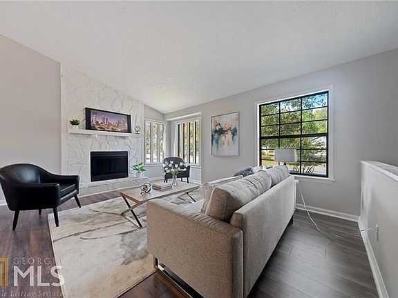 Renovated contemporary in top-rated district-Dolvin, Autrey Mill, Johns Creek HS! So many updates. New white Shaker kitchen cabinets with granite counter. Eat-in kitchen. All new stainless appliances w/GAS range! Cathedral ceilings in Living/Dining room and cozy fireplace. Deck off dining room for BBQ. Open floor plan for entertaining. New flooring throughout. New paint inside & out. NEW Roof, water heater. Newer HVAC. Fenced yard for Fido and room for playset. Large bonus room for office/media/playroom. Cul-de-sac block. Close to Newtown Dog Park, shopping, Greenway. New garage doors. New bathroom vanities with granite. Best value in top ranked school district in this price range!