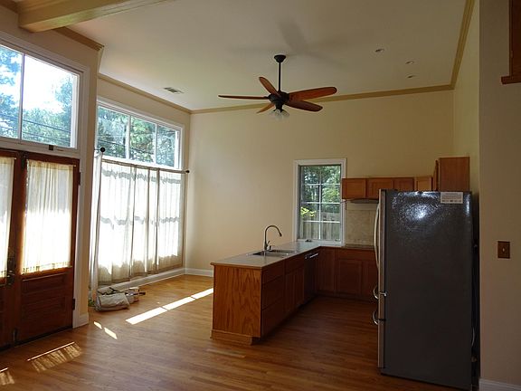 This Pinebluff historical "General Store" was Completely restored to a unique and lovely home! While much care was given to preserve it's beautiful character, the completely remodeled home includes new insulation, plumbing, electric, dry wall, kitchen and baths. Energy efficient, Single level offers 2 Bedrooms, a semiprivate Full Bath, Large entertainment area includes Living space with Open Kitchen and Dining! Laundry room with hook ups only (WD not included) and half bath. Upper-level storage off hallway. A private fenced back yard offers a deck and outdoor storage. Short walk to Pinebluff Lake with beautiful walking and biking trails. Short drive to Southern Pines and Aberdeen. One small dog or one cat approved at owner's discretion. No Smoking. One year lease required. Tenant responsible for yard maintenance.