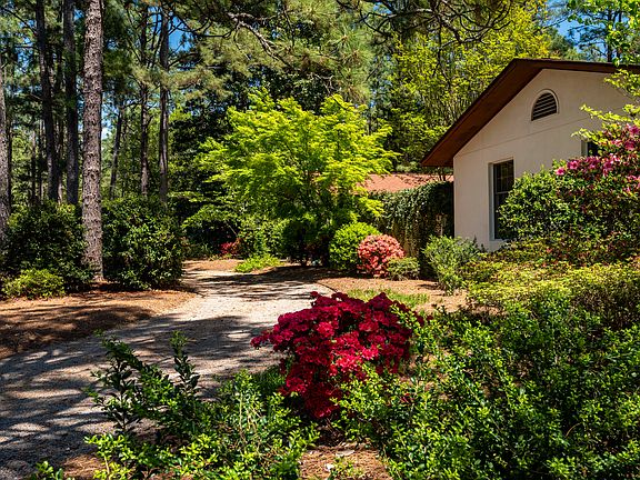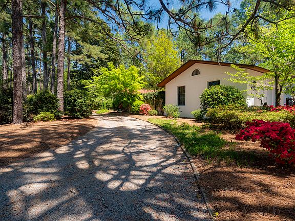 If you are looking for a Southern Pines home with character look no more! This Mediterranean style stucco home is tucked quietly among mature trees on 1.06 acre lot. The circle drive provides much parking and easy access to Midland Rd. An arched entryway leaves into a bricked interior courtyard which provides a beautiful outdoor living space. This ranch home is a great place to raise a family or to entertain guests. The living room is spacious & the home has a formal dining room as well as breakfast area. The kitchen is open to the family room which included built ins and a fireplace. The split bedroom plan offers a master with a sunroom/office. A covered back patio looks out into a large, private & fully fenced yard which has a storage building & attached green house with adjacent raised flower/vegetable beds. The location is convenient to local medical facilities, fine dining & shopping.