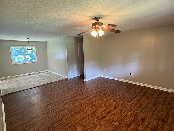 This home has just been remodeled with new laminate flooring, a fresh coat of paint, a new roof, a new stainless steel refrigerator, a new dishwasher, and a new A/C and heating unit. The spacious kitchen has many cabinets for storage and a charming breakfast nook space in front of a window with space for a little table. There is also a space in a dining room that is attached to the kitchen for a larger table. The numerous windows provide a pleasing amount of natural light. The house is 1450 sq ft, has a 2 car garage and an unfinished basement with washer and dryer hook-ups. It has 2 bedrooms with a third room that can be used as a bedroom or as office space. We can put a wardrobe in the 3rd room so it can be used as a bedroom. You will enjoy the nice full deck on the front and a smaller deck for grilling in the back just outside the kitchen. The large yard is perfect for kids to play in. This property is conveniently close to I-26. It's a short 8 minute drive to South Asheville, 3 minutes to Advent Health and 14 minutes to downtown Hendersonville. You couldn't ask for a nicer location! No smoking allowed, 2 dogs max at 40lbs each, no changes to building or painting. We are looking for at least a 1 yr lease agreement.