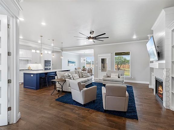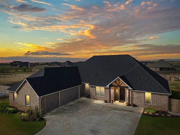 Amazing custom-built home in Elk Creek that features 5 bedrooms plus an office and 3 full baths and a half bath just minutes from Target, Academy, TJ Maxx and located in the Cache School District! You must tour this lovely home to take in all the fine details such as modern gold-edged tile around the fireplace, separate office, modern brushed gold handles, built-in cabinetry and shelving, gutters and more! As you approach this 3,375 sf home, you will notice an over-sized entrance door, beautiful light fixtures and a 3-car garage, a spacious driveway and an English Garden flower bed. This gorgeous home features ample storage in the kitchen with "to the ceiling" cabinetry, under-cabinet lighting, upper cabinet lighting with glass-accent doors and beautiful quartz countertops! The well appointed kitchen boasts double ovens, double dishwashers, a large gas cooktop, a decorative vent hood and stylish brushed gold pulls on the cobalt blue and white cabinetry. The primary bedroom is privately located off the North side of the living area. It accommodates a king-sized bed with additional furniture and has a private spa-like bath with a 6-foot tub, over-sized walk-in shower with multiple product cubbies and multiple shower heads, a beautiful double vanity and a large walk-in closet with multiple levels of racks, tons of built-in shelving and built-in drawers. The 3 full baths and a half bath are each well appointed with modern mirrors, beautiful lighting fixtures and quartz countertops. Three of the other 4 bedrooms are located across the home from the primary suite. These three rooms are spacious and each have walk-in closets with built-in cabinetry. The 4th bedrooms is separated from the other 2 bedrooms as a true guest room with a private entrance into the 3rd bath. The 5th bedroom is an upstairs bonus room that has 2 distinct areas and a private half bath. This would be perfect for a media room, play room, separate bedroom or a second living area. This home has an over-sized pantry with a sink, tons of cabinetry and a refrigerator. The laundry room is just off the built-in mud bench area and it features a folding table, bar for hanging clothes and storage cabinets. The back patio is covered and has TV cable and electrical outlet as well as a gas grill hook up. The back yard is fenced with a dog run on the south side of the home. There are so many details and upgrades in this home, please call Kim Thomas to tour this home, 580-704-9916.