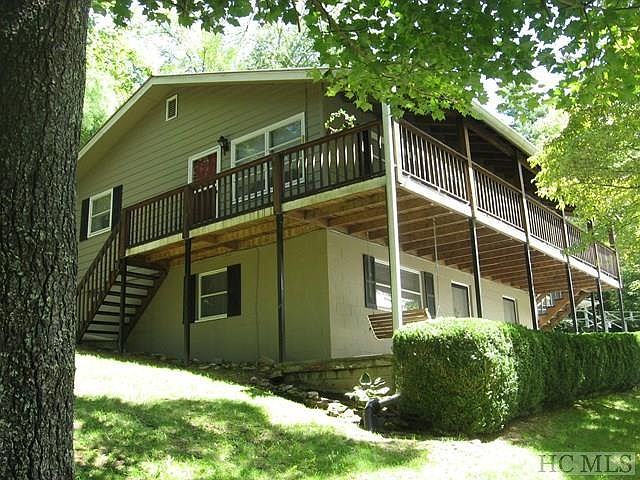 Furnished 2 bedroom 2 bath home with Lake Glenville view close to the center of Glenville, detached single care garage with workshop and storage area, covered front porch on main and lower level, full bath on each level, easy access on paved road, laundry room and large bonus room on the lower level.