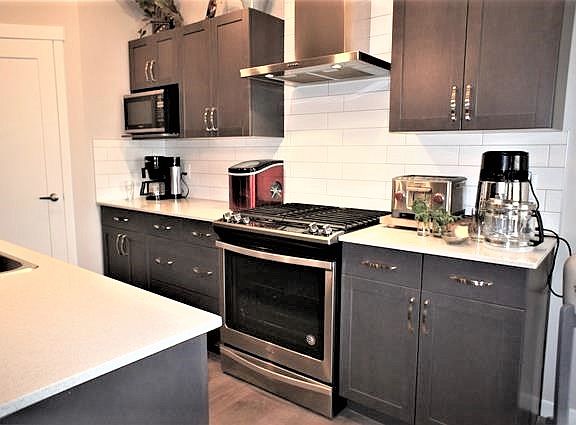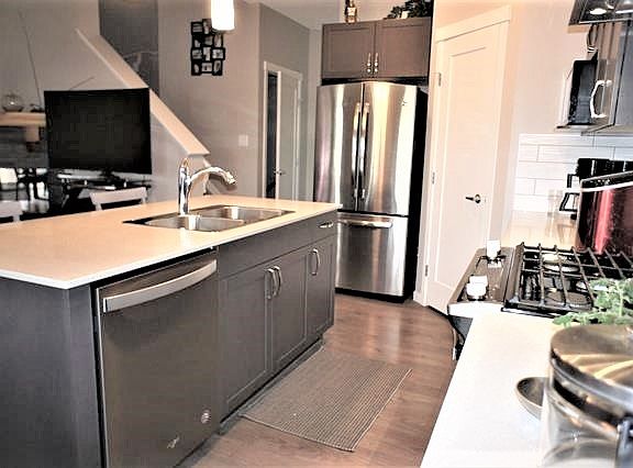 Location-Location-Location 1350 square foot 1/2 duplex backing onto open field. This very well kept home features large great room with corner stone facing gas fireplace. Adjoins modern open kitchen with stylish modern cabinets. Corner pantry and functional family island all with quartz counter tops. The dinette has sliding patio door to good sized deck in sunny south facing back yard. Garden shed included, fenced backyard with 8' gate to future walking path. Relax while BBQ under pergola on the full deck. Upper level has three large bedrooms. Master bedroom has three piece bath, with double walk-in shower and good sized closet. Unfinished basement with rough in for bathroom. Stay cool, this home has central air conditioning! Single attached garage. Extra wide driveway. Show 10 out of 10 Move in READY!