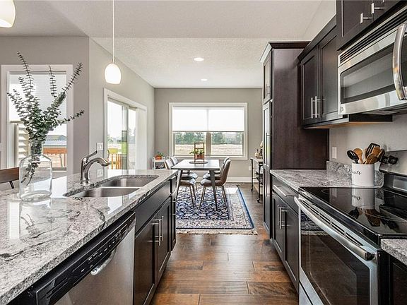 As you pull off University onto gorgeous NE 64th Street w/ all of its beautiful acreages, you'll fall in love w/ the drive to this lovely ranch just a short 15 minute commute from downtown! For this, newer construction ranch is just 1 blk off NE 64th nestled within the newer Sunrise Pointe community. Curb appeal is evident here w/ a front porch, landscaping complete along w/ a combination of neutral stone/siding boasting pops of colors from the well thought out plantings. Enjoy watching the sunsets from the porch each evening. Walk into a wonderful open flr plan w/ large rooms & plenty of space to grow. The master suite is tucked away from the rest of the home providing just the right amount of privacy. Soaring vaulted ceilings, large windows, sunroom/dining off the kitchen & a great center island make this a perfect place to gather when entertaining w/ friends & family. LL is waiting for your touch. Super great layout with egress window for a 4th bedroom.