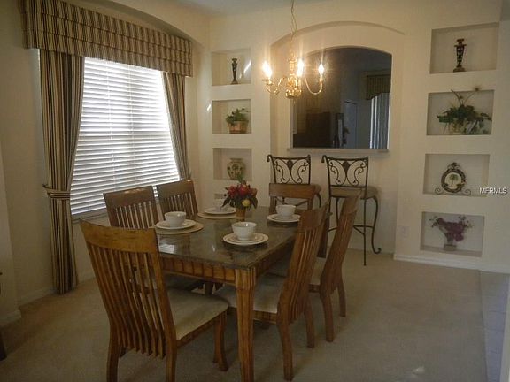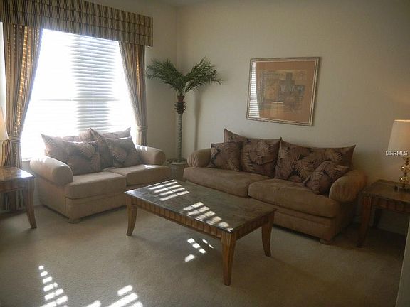 This very beautiful 6 bed 5.1 bath Pool Home is in the very private & highly desired gated community know as Solana. Zoned for short term rentals and manned with 24-hour security, you will enjoy the peace & quietness found within. Your new home has two Masters, one on the 1st fl.& 1 on the 2nd fl. There are two other En-suites and all rooms are spacious and airy. Furnished and move in ready, you will enjoy your spacious living room, breakfast bar, family room and the gorgeous kitchen. Have a dip in the pool & enjoy the spa. When you are ready to venture out, enjoy your community which provides a stunning community pool, play areas, a Tiki Hut and a wonderful exercise facility & club house. Close to major attractions like Disney & Universal, and minutes from banking, shopping, & nightlife, it is all right her and waiting for you.