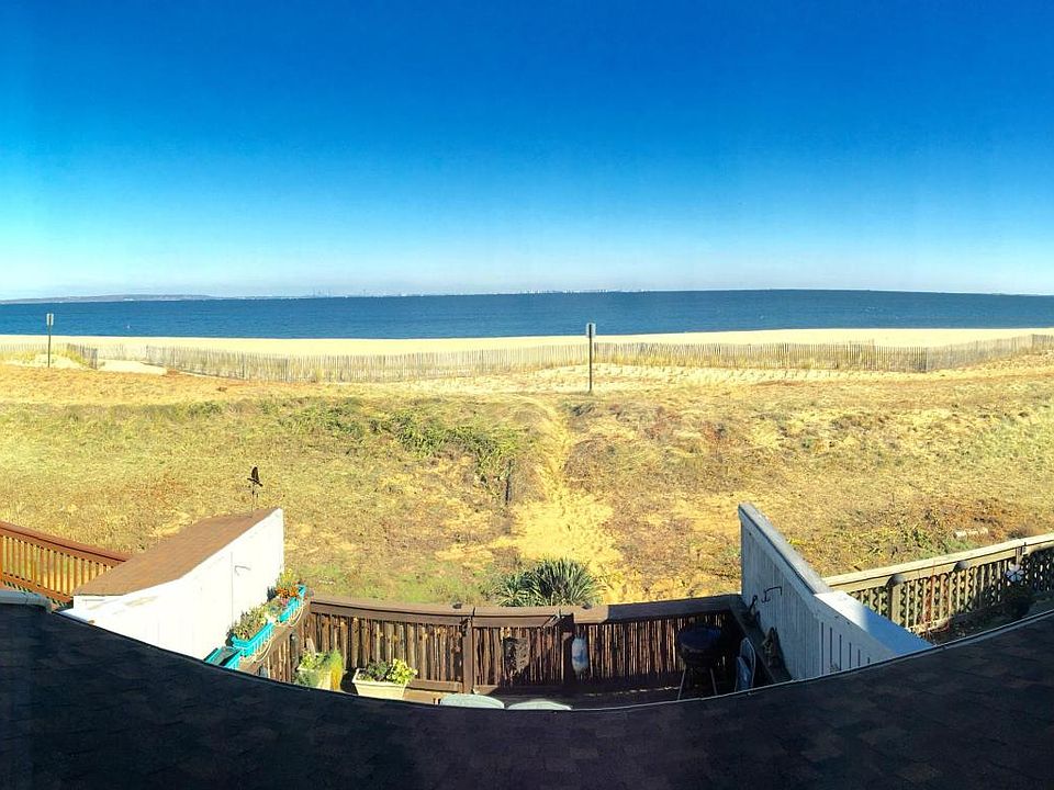 ''Beachfront Townhome'' Beachside Gardens is a true hidden gem. Enjoy the views all year round from the 2 bedroom 1.5 bath home. Quiet complex with its own private beach as well as private access. Enjoy fishing from the beach and night-time bonfires. Home has 2 nice size bedrooms. Newer LG front load Washer and steam Dryer. Large deck to enjoy these amazing views. Both bedrooms have California closets. Newer windows. Feel like your on vacation all year round. Or use this amazing townhome as a weekend get-a-way. This is a pet friendly community. Close to New York City transportation. This did not flood in Sandy. Fees cover flood insurance and homeowners insurance.