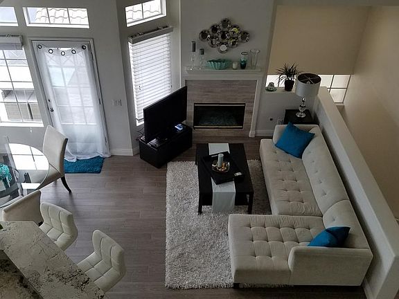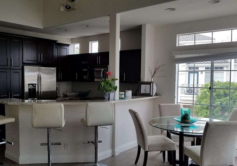 Fabulous carriage-style end unit with no one above or below. Contemporary wood grain plank tile in main living area and designer carpet in bedrooms. Lots of natural light with vaulted ceilings for that spacious, airy ambiance. Upgraded kitchen with quartz/granite counters and breakfast bar open to dining and living area with fireplace. Stainless steel refrigerator and in-unit full size washer and dryer included. Located in The Breakers with resort-style association pool and spa. Unit has a large 1-car direct access garage with storage racks and plenty of guest parking nearby. Short walk to Ocean Ranch shopping center (via private Breakers access gate) which features Trader Joe's, restaurants, luxury movie theater Cinepolis, retail shops and a 24 Hour Fitness center. Approximately 1.75 miles from the beach.