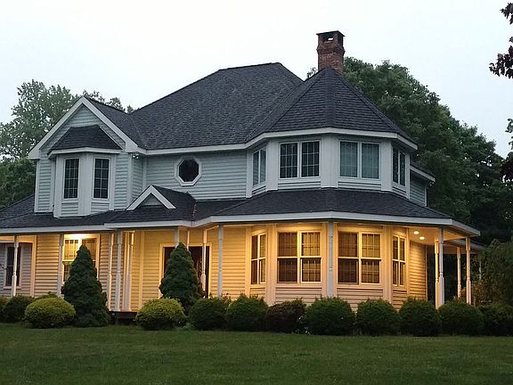 This stunning colonial sits on a picture perfect 2.13 acre lot over looking Camp Gilowat Pond. Exterior features a 160 foot wrap around covered porch. Interior features a main level office, sitting room with fireplace. Formal dining room. Large eat in kitchen with breakfast nook that features custom coffered ceiling. Large great room with custom stone fireplace from floor to ceiling. Billiards room off family room, that could be used as a possible gym/2nd office. Up stairs awaits a master suite with private bath, with a Roman style walk in shower with multiple shower heads, and a whirlpool tub. The master bedroom walk in closets are a dream come true! The 2nd floor offers 3 more bedrooms, full bath and loft overlooking family room. Tons of attic storage is also available. A three car garage is attached to a mudroom leading to a walk in basement, ready for finishing if you need more space or want a workshop for projects. Plenty of space for your dream pool. This private retreat is not to be missed!