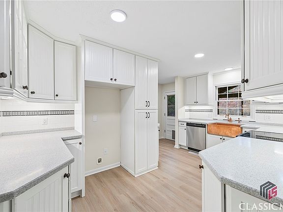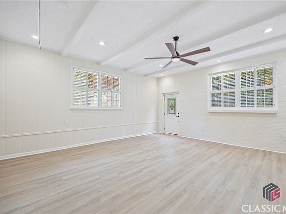 Welcome home to this beautiful, renovated home located in University Heights, just minutes from everything Athens and UGA has to offer! This expansive multi-level house boasts 4 bedrooms and 3 full bathrooms. Upon entry, you'll be greeted by one of the two family rooms, offering versatility and comfort in different spaces in the home. The kitchen boasts ample custom cabinetry, stainless-steel appliances, and a copper apron front sink, with separate dining room situated adjacent to. Make your way down a few steps and you'll discover the Owner's Suite, complete with a cozy den featuring a fireplace, and ensuite with marble countertops and tiled flooring. Also enjoy your own exterior door to the porches for relaxing. Upstairs, there are two secondary bedrooms and a full bathroom with tile flooring and stone countertop vanity. The fourth bedroom and bathroom are located in the spacious basement, which is ideal for an additional family room or a flexible living space. The bathroom boasts a large vanity with quartz countertops and shower/tub combo. A sliding glass door opens onto a covered ground-level deck, perfect for entertaining family and friends. On the main level off of the kitchen is a large screened in porch with access to the deck below and back yard with mature trees for privacy. New luxury vinyl plank throughout the main level and basement, and new carpet in the bedrooms. All new electrical fixtures and devices. New roof. Located just 2 miles from UGA campus, 1 mile from UGA Veterinary Teaching Hospital, and 1 mile from the new Kroger. Also, only 15 minutes from Wire Park! With so many options of shopping, restaurants, and entertainment, yet private and tucked away on a corner lot, this home offers the perfect balance of relaxation and convenience in a prime location! (*photos with furniture are virtually staged images to show the rooms potential)