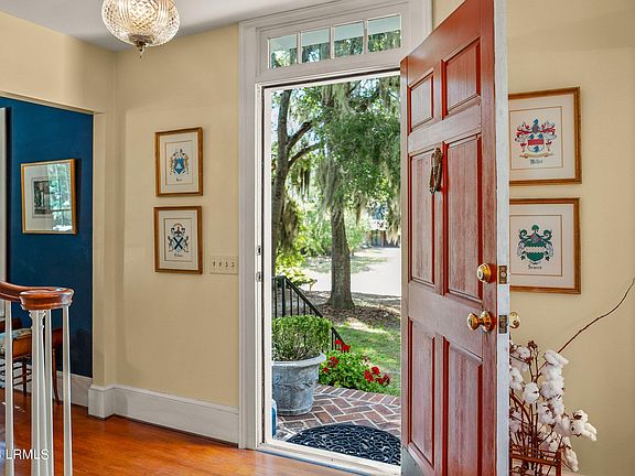 Currently the only home on the active market in Spanish Point, this custom built, 1 owner Saltbox sits on a high bluff w/no HOA fees or flood insurance required! This home was designed from a Historic Williamsburg Collection plan & has beautiful details throughout. Waterford crystal lighting, ample built-in bookshelves & front door framing that was designed by a SCAD architectural history professor, this home is truly one of a kind. The 1st floor offers a cozy living space w/a fireplace made with replica Savannah brick. This leads into the bright kitchen. There are formal dining & lvg rooms nearby as well. The staircase to the 2nd level hosts exposed brick & leads to the Master Suite & secondary bedrooms. Enjoy the large backyard and central location. Come tour this special home today!