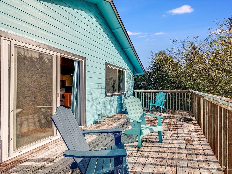 A retreat — cozy like a cabin, w/ salty ocean air drifting through every room. Just a short walk to the beach, the deck sits high enough that mornings feel peaceful & private. Recent updates like a brand-new roof, deck, & fresh flooring were all part of the vision: comfort made to last, & easy everyday living. The oversized lot has room for Grandma & Grandpa’s RV, & deer wander through often — some friendly enough to eat from your hand, while eagles make their rounds overhead. Use it as one open spacious home, or enjoy split into two completely separate living spaces, each with its own entry, porch, and kitchenette. A home that truly flexes to fit real life, with privacy, peace, and the scent of the sea.