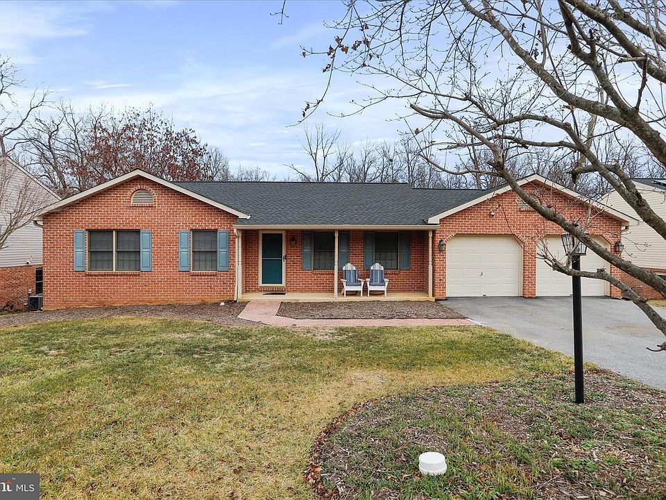 All brick rancher with an attached two car garage backing to woods located in Colonial Park! Main level features an open floor plan with cathedral ceilings in the living room and kitchen area with an eat-in dining space and a door to a beautiful deck to sit a relax, three bedrooms, two full baths and a laundry room. The basement has a family room, bedroom, office/rec room, a full bathroom, a utility and storage area and a walkout to a brick patio and fully fenced rear yard with two sheds (one with electric). Perfect location-close to interstates, the hospital and other medical offices, Hagerstown Community College, shopping, restaurants, and much more! 1 Year Home Warranty Included.