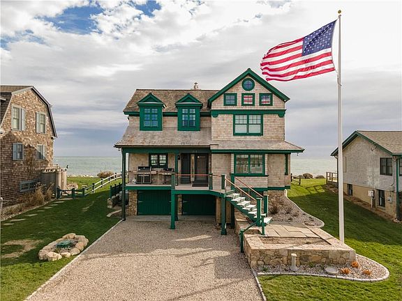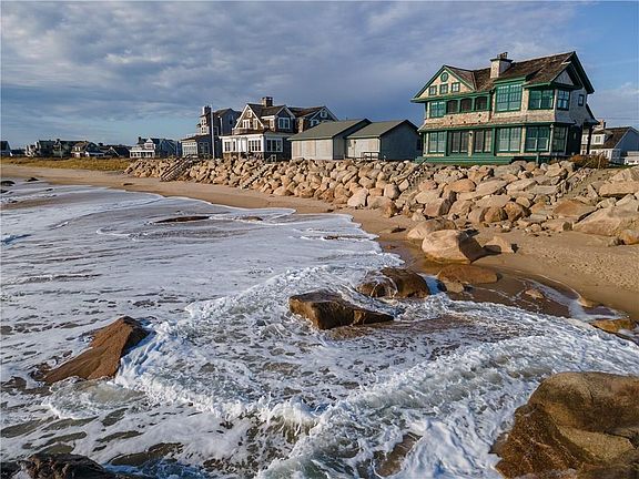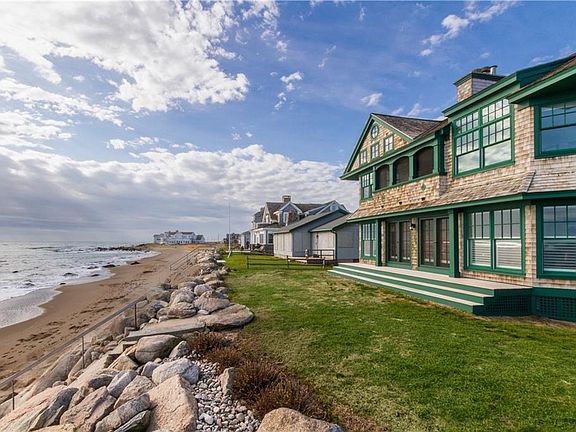 Located on one of the most beautiful beachfronts in the Ocean State, move to this stunning New England cottage and you will wake up every day with a smile on your face. Three bedrooms and three full baths in almost 2300 square feet of living space, this home is designed to take your breath away with expansive ocean views from nearly every room. The main living level features a new chef's kitchen, together with a spacious dining area and living room. A double-sided fireplace is the perfect centerpiece in this open and luxurious space and sustains visual and light flow throughout. Two sets of French doors provide seamless access to the yard and glorious sandy beach. The second level offers an additional living area complete with an ocean-front window seat to watch the waves in every season, and opens to a covered and protected balcony where you can immerse yourself in all the splendor of front-row life by the sea. A master en-suite with gas fireplace, expansive windows everywhere, and lovely built-ins are some of the remarkable details of this home. Just when you thought you had it all, the top floor surprises and delights as a dream space for kids or the young at heart. One of only 13 properties in the exclusive Central Beach section of the beloved community of "Quonnie", this is a rare and exceptional opportunity to buy a home where you will be forever grateful!