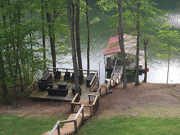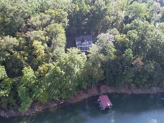 Norris Lake front home just 4 miles off highway 33...great location.Easy to care for with vinyl shake siding (high end) Nice size kitchen with large dining area, living room with covered porch through french doors, 2 bedrooms and a bath on main floor.Large laundry room on main floorMaster down with outside porch and fireplace. Additional sleeping room / office and another family room with screened in porch all in day light walk outNot steep to the lake with a covered one slip dock and nice deck down by the water..This home comes fully furnished with rental history it stays rented. Has great outdoor space for entertaining