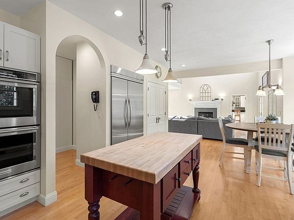Versatile bonus roomStone wallsVaulted family roomWooded viewsLarge islandDouble wall ovenGas cooking