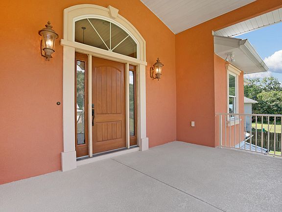 Ready to retire on the water where your dollar can stretch? This 3/2.5 multi-level home sits on a 1/2 acre lot with a full-size balcony facing the magnificent water view. An open floor plan with a combined living/kitchen area great for entertaining. Kitchen offers granite countertops. Multiple upgrades throughout... arcus stone, trex stairs, custom french doors, central vac system and more! Rooms are spacious with great walk-in closets offering much organized storage. An office with built-in bookshelves. A full-size unfinished basement with private entrance offers A/C hookups and pre-plumbing. Wonderful location for out-of-state guests as it is located 1 1/2 hours from both Orlando International & Jacksonville International airports. Drop a line, relax on the balcony...enjoy FL living