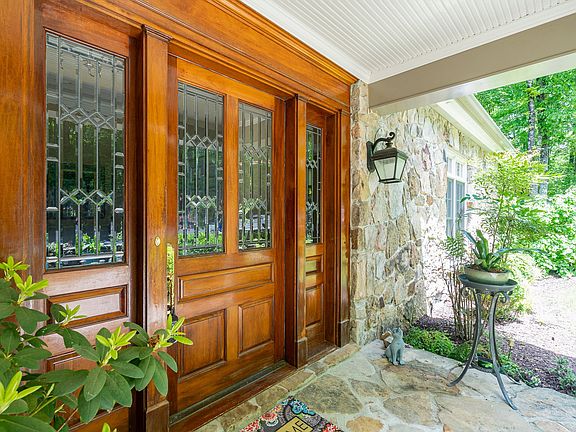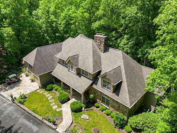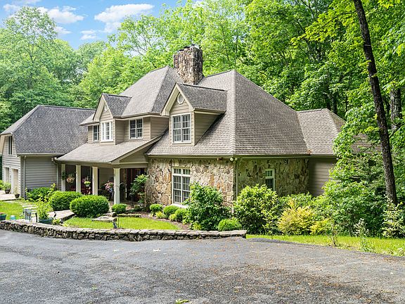 Indulge in luxury living with this custom-crafted masterpiece surrounded by nature on Greenbelt status.There are natural pools under the waterfall! This would make a wonderful Wellness Retreat! Waterfalls nestled in lush trees create a tranquil retreat. Three additional cabins and a bathhouse are located on the property that can be offered for additional livable space, friends/family, or even a gym! The main home features central vac, whole house water filtration, 2 gas and 2 wood-burning fireplaces, air purifiers, a backup generator, a wine cellar, and an all-season sunroom. The primary suite is on the main floor which includes a walk-in shower. Property offers a kitchen garden (with attached greenhouse), a living spring and a gun range! Shopping and other essentials are just a quick 10 minute drive! A haven for nature lovers seeking privacy, this is the epitome of dream living!