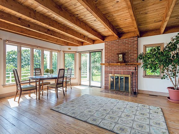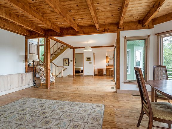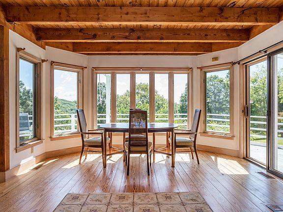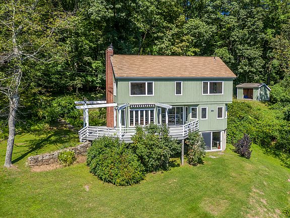 TREASURE HILL VIEWS...The beauty of Treasure Hill is captured in this charming, light-filled contemporary. You're welcomed by open space dominated by the living room with fireplace, dining room and kitchen all integrated and facing the incredible southeast views. There's easy access to the wrap-around deck that overlooks the beautiful property with mature trees and stone walls, consisting of 14+ acres. Perfect for entertaining or just relaxing and communing with nature. The post and beam home has natural wood floors throughout, and there are two bedrooms, including one on the main floor with private bath. An additional room on the second level with a vaulted ceiling and lots of natural light could be a studio or possible bedroom. Other features include a generator and central air, a walkout lower level and storage shed. It's all set back from the road, an ideal spot for wonderful privacy. This is a most desirable South Kent location, close to the village of Kent, Lake Waramaug and New Preston, Bulls Bridge Golf Club, miles of hiking trails and MetroNorth-- only about 1.5 hours to Manhattan. A great find, yours to discover.