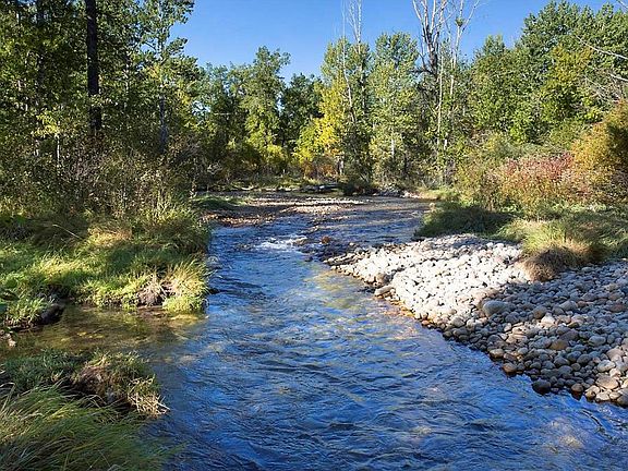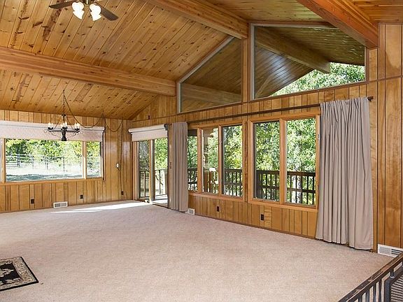 282 feet of Rock Creek frontage, more than 13 acres of nature. Bring your fishing pole! In past few years, concrete siding, metal roof, Anderson windows, well, septic, fencing, radon mitigation system and more! Huge deck overlooking Rock Creek. Large shop/storage shed. All paved road.