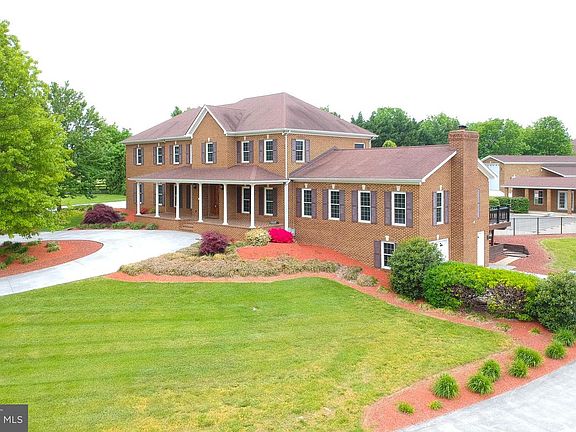 The pool is open, bring an offer! This all brick traditional colonial home sits proudly on over 5 beautiful acres which is landscaped and fenced . A concrete circular drive surrounds the home and 2 detached garages. Toilets & utility sinks in upper level heated & lower level garage to the right of home. 200 amp service in RV Garage. Electric hookup for RV. Mature trees provide privacy for enjoying the in ground pool. ( Pool house and pool equipment included, new pool cover.) A spacious rear deck offers poolside dining and makes a welcoming spot for outdoor gatherings. Sun room and Grandeur family room for holding large gatherings! Kitchen was remodeled in 2008. Granite counters and island. Stainless steel appliances. 3 hydrants on the property. Camera security system set up. Pellet stove. Water softener and UV light. Sunscreens on back windows. Just minutes from Winchester Medical Center.