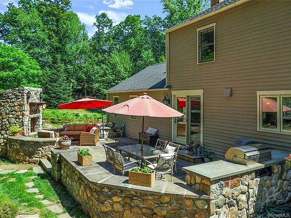 165 VALLEY FORGE is A SUPERB PLACE TO CALL HOME! Nestled between the Saugatuck River & Reservoir and Trout Brook Valley Preserve while set back off the road in a very private setting of 2 acres adjoining these preserved areas is this 3500 sq ft inviting updated center hall colonial with open floor plan. The Stunning white chef's kitchen opens to the casual dining area and expansive vaulted ceiling family room w full natural light and stunning stoned fireplace which flows to the outdoor living area where you can also RELAX AND ENTERTAIN on the spacious stone patio with a cozy fireplace and sitting area plus an outdoor grill and dining space while look at and enjoying nature, as the kids play in the beautiful backyard and treehouse. On the second floor, there is a beautiful primary bedroom with a luxurious bath with a large shower, as well as, a walk-in closet. Plus 3 other bedrooms and an additional full bath. The lower level offers a rec/playroom plus an additional bedroom and bath. There are multiple places to have a home office or suite. This home is conveniently located close to amenities and Weston award-winning schools plus within walking distance of this peaceful property is fly fishing in the Saugatuck River across the street, fish the shores of the Saugatuck Reservoir, or hike through Trout Brook. Come take a look. You will love living here! BEST DECISION YOU CAN EVER MAKE