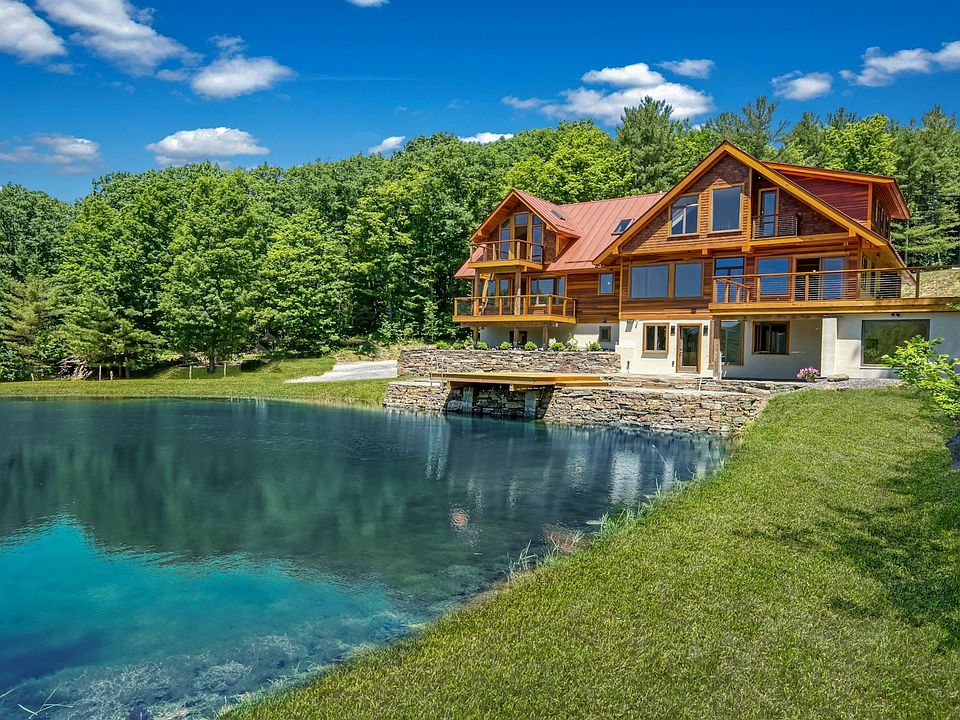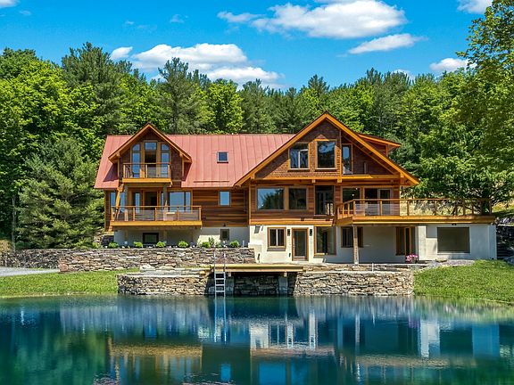 This serene and utterly private 5,000 square foot custom built home with separate caretakers cottage is magically sited on 30 acres of meadows and woodlands and surrounded by miles of protected state land with no neighbors, lights or rooflines in sight. A long winding driveway leads up to this extraordinary home featuring a dramatic Living/Dining room with wood burning fireplace, an open chef's kitchen and far-reaching views overlooking Dutton Ridge State Forest from a wall of oversized windows. There are 4 bedrooms, multiple home offices, 3 bathrooms and 4 beautiful multi-leveled decks with unobstructed views that are guaranteed to elevate your senses. The lower level boasts an entertaining space complete with full kitchen, living area and separate office/gym with direct access to a magnificent stone patio that runs the full length of the home. The design of the patio includes a spa area overlooking a gorgeous crystal clear spring-fed swimming pond. A trail from the home leads to 2 additional ponds with more incredible views and miles of private forest trails ideal for hiking, biking, snowmobiling and exploring the wonders of nature. Every inch of this immaculate home has been carefully considered with the utmost comfort and energy efficiency in mind. Additional amenities include multi-zoned central air-conditioning, radiant heated floors, a central vacuum system, a separate laundry room, high speed fiber-optic broadband cable and internet, a brand new 22 kw whole-house generator, and lots of custom cabinetry and storage throughout. A pristine and restorative paradise just 10 minutes to Middleburg, 20 minutes to Ski Windham, 45 minutes to Hudson and just under 3 hours to New York City. Truly one-of-a-kind!
