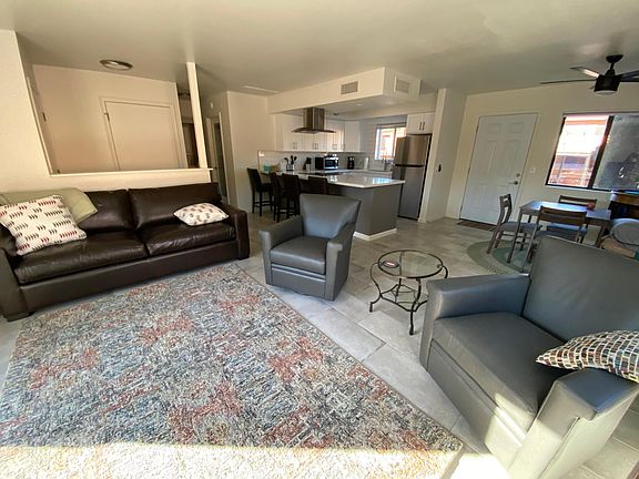 Completely remodeled 1 bed/1 bath fully furnished condo in the Village of Oak Creek with all new luxury furniture in living room, bedroom and kitchen area. Stand alone single level unit - no shared walls. Includes central AC, washer/dryer in unit, and 2 reserved uncovered parking stalls. Walking distance to shopping, golf courses, banks, restaurants and bars. No smoking anywhere on premises and no pets. 6 month lease only (expires March 31, 2022) with background and credit check required for all occupants (2 occupants max). Six month lease (max) for fully furnished condo in the Village of Oak Creek. $2,800 monthly rent includes all utilities (cable, WiFi, electricity and water).. $2,800 security deposit plus first and last months rent due upon lease signing. No pets and no smoking - no exception. Please provide your full name and contact info if you'd like a response (for the protection of all parties, the property address will only be provided after we talk)