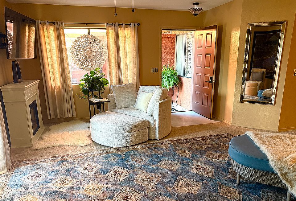 Experience an exquisite Sedona red rock view right inside your home! This 2-bedroom / 2 full bath condo with covered parking is a short, easy walk to restaurants, shopping, grocery and hiking trails too. Home has been freshly painted throughout, new carpet, new lighting fixtures, new skylights - kitchen and bathrooms, bathroom fixtures and vanity upgrades, new tile - bathrooms and kitchen, new appliances and more. Exterior stucco redone in 2024 as well as roofs resurfaced. This is a gorgeous, dream home waiting for you to tour and enjoy. Located in the Village of Oak Creek - the best part of Sedona. Gorgeous views of red rocks, peaceful living away from hectic traffic, fabulous eateries, shopping and the best coffee in the region - block away. Delicious cuisine - block and half away! Enjoy gorgeous Arizona sunsets while lounging in your living room, delight in fabulous views of the red rocks from living room or patio. This is one of Sedona's finest dream homes ready to be enjoyed!