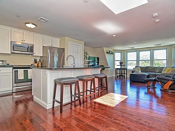 RENOVATED WEST SIDE PENTHOUSE. Sunny and new 952 sq ft, 2BR/1BA condo located close to the West Broadway shops and restaurants, and less than 1 mile from the Broadway T stop and the Seaport District. Details include a fantastic open floorplan kitchen/living area with an island, skylight, and cherry flooring. The tile bathroom, 2 equal size bedrooms with generous closet space, central AC, and city views make this unit a must see.